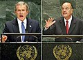 在美國發(fā)動旨在推翻他的戰(zhàn)爭3小時后,薩達姆發(fā)表電視講話,痛斥布什是“罪惡的小布什”(The criminal little Bush)。薩達姆身穿軍裝,頭戴黑色貝雷帽發(fā)表電視講話。他說:“你們將戰(zhàn)勝敵人!