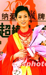 由廣東電視臺主辦、中國概念九八模特經(jīng)紀有限公司協(xié)辦的“納愛斯雕牌2003超級模特選拔賽”,三月二十二日晚在廣州舉行決賽。中新社傳真 錢興強 攝