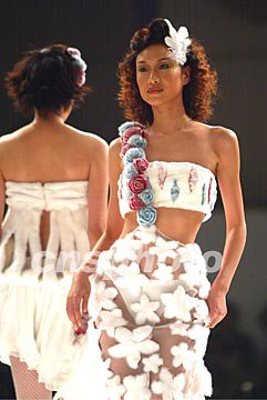 香港皮草服飾二十五日晚在北京舉行的中國國際時裝周上亮相,模特展示設(shè)計(jì)考究、做工精美的2003香港新款皮草。作者:毛建軍