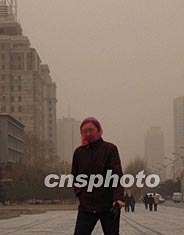 二十六日上午,長春市還是陽光明媚,下午忽然“天公變臉”。市區(qū)天空一片暗黃,路人不得不用口罩、帽子、紗巾等將頭部“武裝”起來,在風沙中低頭疾行。作者:韓丹
