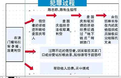 據(jù)起訴書指控,同案人陳氏兄弟——陳志雄、陳勃生(均另案處理)糾集了同案人曾繼軍(已被執(zhí)行死刑)、被告人麥國慶、林長(zhǎng)華等人到澳門賭場(chǎng)從事非法活動(dòng),主要負(fù)責(zé)“疊碼”、介紹他人參賭、借高利貸。