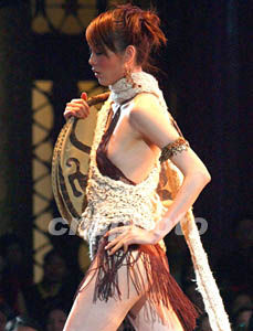 北京與香港合作的一家服飾公司年輕的設(shè)計(jì)總監(jiān)金光,新春展示他從中國古幣獲得靈感的鏤鑲時裝。作者:賈國榮