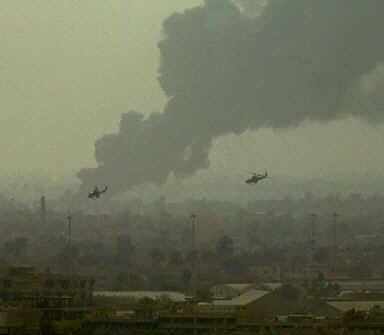 圖:美國阿帕奇武裝直升機(jī)首次在巴格達(dá)上空出現(xiàn)