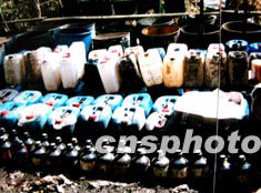 <div=left>中緬警方合作在春季行動中摧毀金三角一個毒品加工廠,繳獲大量毒品及槍支彈藥。圖為該次行動中繳獲的部分制毒化學(xué)配劑。作者:張磊