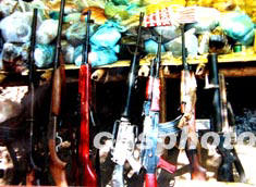 <div=left>中緬警方合作摧毀金三角一毒品加工廠,繳獲大量毒品及槍支彈藥,有班用機槍、美制卡賓槍、地雷、火箭彈等。作者:張磊