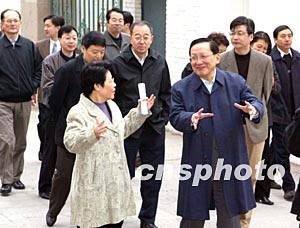 四月十日上午,中國國務(wù)委員唐家璇在國務(wù)院僑務(wù)辦公室主任陳玉杰的陪同下,到國務(wù)院僑務(wù)辦公室和中國新聞社考察指導(dǎo)工作。作者:滿會喬
