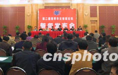 “第二屆世界華文傳媒論壇”將于今年九月二十二日至二十四日在湖南長(zhǎng)沙召開。四月十日,主辦單位中國(guó)新聞社、長(zhǎng)沙市人民政府和湖南省外事僑務(wù)辦公室共同在長(zhǎng)沙舉行新聞發(fā)布會(huì)。圖為新聞發(fā)布會(huì)會(huì)場(chǎng)。作者:白祖偕
