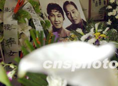 騰出來(lái)設(shè)作靈堂的客廳正中,鮮花簇?fù)碇粡垍亲婀馀c新鳳霞的合影。照片上兩人正年輕,都在動(dòng)人地微笑。
