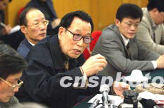 圖為常務(wù)理事李家泉率先發(fā)言,展望海峽兩岸關(guān)系。