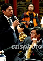 有“地產(chǎn)英雄”、“地產(chǎn)界金融家”之稱的任志強(qiáng)(站)、劉曉光(坐)等地產(chǎn)精英,十八日在北京通用“雙雄”峰會(huì)上第一次就“地產(chǎn)與汽車兩大產(chǎn)業(yè)并軌發(fā)展”舉行探討。作者:鄭萍萍
