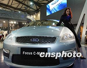 美國福特汽車公司新型跑車在美女的陪伴下十九日亮相即將開幕的第十屆上海國際汽車展覽會。作者:趙振清