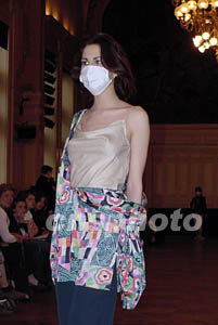 四月二十四日在巴黎舉行的一次春夏時裝展上,模特兒們戴上了防“非典”口罩,顯示出另一種生活風(fēng)情和時尚。作者:蔚中