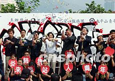 香港基督教巴拿巴愛心服務(wù)團(tuán)及太平山青年商會聯(lián)合舉辦的“動(dòng)感青年放光芒”活動(dòng),4月27日在文化中心舉行,主禮嘉賓及動(dòng)感青年在開幕儀式上,表達(dá)對香港的愛心和關(guān)懷,傳遞一分光和熱,祝福前線醫(yī)護(hù)人員。洪少葵 攝