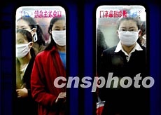 北京抵御SARS困擾之際,乘坐地鐵的上班族戴上厚厚的口罩,加強自身防護奔赴崗位。作者:鄭萍萍
