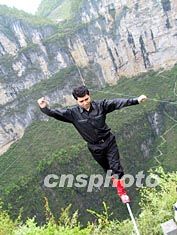 組圖:“高空王”阿迪力將在天坑表演絕技