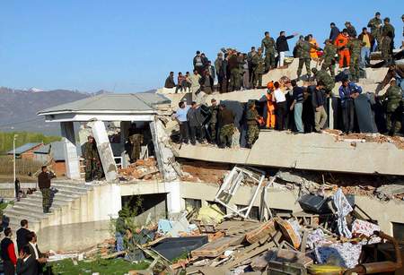 家長們的憤怒與懷疑不是沒有道理的。1999年8月17日凌晨3時,土耳其西部的伊茲米特市發(fā)生7.8級強(qiáng)烈地震,震源深度17公里。次地震發(fā)生在北安那托利亞斷層和西部地震區(qū)交匯處,地震造成大規(guī)模地表破裂,破裂帶從伊茲米特東側(cè)穿過薩帕賈湖一直向北東東向延伸,長度達(dá)180公里左右,破裂以水平錯動為主,最大水平錯距5米,垂直錯距0.5-1.5米。破裂帶最大寬度達(dá)57米。這次地震受災(zāi)面積達(dá)15萬平方公里,約占土耳其國土1/5,其中地震烈度9度以上面積3600平方公里。主震后,余震活動頻繁,密集分布的北安那托利亞斷裂帶上,長約200公里。地震的強(qiáng)烈振動和大規(guī)模的地表破裂,造成了極為嚴(yán)重的地震災(zāi)害。此次地震中,死亡16000多人,26000多人受傷,倒塌房屋10萬余間,近300萬人無家可歸,直接經(jīng)濟(jì)損失超過200億美元。引人關(guān)注的是,這場天災(zāi)中所顯出的“人禍”讓人憤慨--恨不能把老百姓的辛苦錢全部裝進(jìn)自己腰包的建筑奸商們助“震”為虐,他們一手炮制的一項(xiàng)項(xiàng)“豆腐渣工程”成了地震的“幫兇”。土耳其政府隨后宣布向“豆腐渣工程”開戰(zhàn),已有數(shù)名建筑商被捕。