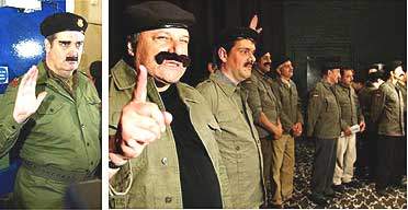 倫敦時(shí)間上午11點(diǎn)(北京時(shí)間19點(diǎn)),倫敦西區(qū)哈默史密斯“河畔攝影場(chǎng)”門外14名演員排起了長(zhǎng)隊(duì),其中《衛(wèi)報(bào)》的工作人員斯蒂芬·莫斯也在隊(duì)伍中,他們是來面試的,看起來他們都長(zhǎng)得有幾分像薩達(dá)姆,頭上戴著黑色貝雷帽,卡其布的軍裝夾克,而且都有黑色的假胡子,最令人驚奇的是居然有一位女士也來競(jìng)爭(zhēng)扮演薩達(dá)姆的機(jī)會(huì),她化妝后也與薩達(dá)姆有點(diǎn)像。