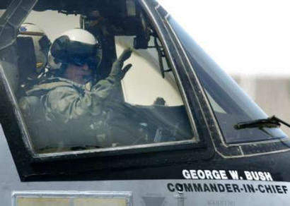 美國總統(tǒng)布什年輕時(shí)曾經(jīng)擔(dān)任得克薩斯州國民警衛(wèi)隊(duì)?wèi)?zhàn)斗機(jī)飛行員,但自從入主白宮后,這位“戰(zhàn)爭(zhēng)總統(tǒng)”根本沒機(jī)會(huì)過把駕機(jī)癮。每次出遠(yuǎn)門,總是先從白宮乘“海軍陸戰(zhàn)隊(duì)一號(hào)”直升機(jī)抵達(dá)機(jī)場(chǎng),然后轉(zhuǎn)乘“空軍一號(hào)”專機(jī)。1日,為前往美“林肯號(hào)”航空母艦發(fā)表有關(guān)伊拉克戰(zhàn)爭(zhēng)結(jié)束的講話,同時(shí)鼓舞士氣,這位總統(tǒng)竟然提出要乘坐F-18型雙座教練機(jī)從圣迭哥飛行數(shù)百公里降落在航空母艦甲板上,然后在當(dāng)天晚上9點(diǎn)(北京時(shí)間2日上午9點(diǎn))發(fā)表全國講話,宣布伊拉克境內(nèi)戰(zhàn)斗“基本結(jié)束”,但是“不達(dá)最終目的,美軍絕不收兵”。