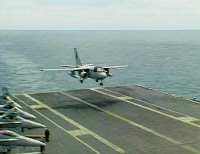 不過,負(fù)責(zé)總統(tǒng)安全保衛(wèi)工作的人員堅(jiān)決反對(duì)讓布什一個(gè)人“上天”,最終,雙方達(dá)成妥協(xié)。布什先乘坐“空軍一號(hào)”專機(jī)抵達(dá)圣迭哥,然后換乘一架定員四人的小型飛機(jī):S-3B“海軍一號(hào)”前往“林肯”號(hào)上“勞軍”。在飛行途中,布什一直坐在“副駕駛”位置上。除飛行員外,機(jī)上還有一名保鏢和海軍官員。當(dāng)年,這位總統(tǒng)曾經(jīng)駕駛過F-102型截?fù)魴C(jī)。此前,登上航空母艦視察的美國總統(tǒng)都乘坐直升飛機(jī)降落在甲板上,不過,這次“林肯”號(hào)距離海岸太遠(yuǎn),超過直升機(jī)行程,以致布什能“親自享受副駕駛的感覺”。