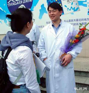 小詹家住7C,他在寧波一家公司駐杭辦事處工作。上午9點(diǎn),辦事處的領(lǐng)導(dǎo)手持鮮花,趕到"在水一方"迎接小詹。簡單的迎接儀式后,小詹匆匆地走出了大樓,他對(duì)記者說:"工作要緊,我要馬上回單位上班去。"