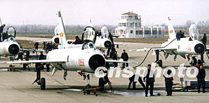 駐守黃海地區(qū)的海軍航空兵殲擊機部隊,在春季超低空攻擊與截擊訓練中,戰(zhàn)機編隊快速加油提高戰(zhàn)斗力。汪漢宗 攝