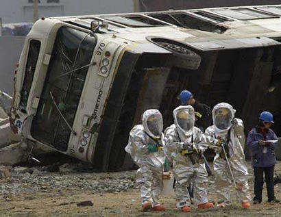 演習(xí)首先在美國西北海岸的城市西雅圖展開,當(dāng)?shù)貢r間12日中午12:09(北京時間13日3:09)開始,模擬西雅圖遭到核輻射或“骯臟炸彈”攻擊的情景。具體設(shè)想是恐怖分子在西雅圖市的南部施放了放射性武器,將造成了低輻射性微粒的擴(kuò)散,使100人喪生,另外還有許多受害者受傷,等待救護(hù)。