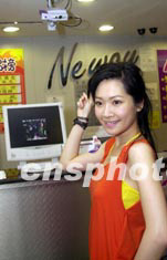 歌星關(guān)心妍5月14日出席在香港尖東Neway卡拉OK舉行新歌祝捷會(huì)。熱情的歌迷除送上鮮花外,更別出心栽送上皇冠頭飾。中新社傳真 鄧慶樂(lè) 攝