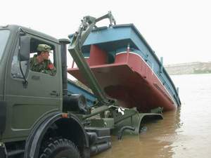 中新網(wǎng)5月16日電 據(jù)湖南《東方新報》報道,在瀏陽河訓(xùn)練碼頭的空地上,隨著軍官一聲令下,不到半個小時,200余名官兵就豎起了面積近30平方米的軍用帳篷、可照射直徑達(dá)60米范圍的多功能照明燈、一條近20米長、1米高的防洪子堤。昨日上午,駐湘某舟橋團(tuán)出動20余臺舟橋車輛,首次利用新式器材進(jìn)行防洪大演練。