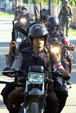 印度尼西亞政府18日宣布將對(duì)亞齊叛軍實(shí)行軍事打擊,并在該國(guó)亞齊省實(shí)施戒嚴(yán)。圖為印尼政府軍在亞齊省內(nèi)加強(qiáng)安全警戒。