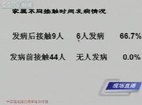 下面介紹的就是該病人非典病毒傳播的傳播鏈。該病人在其家屬中的傳播率為66.7%(2/3)。同時(shí),除造成家屬傳播外,又造成醫(yī)院同房病友及相關(guān)醫(yī)護(hù)人員的傳播。總共造成18個(gè)非典病例。其中密切接觸者共有6人發(fā)病,并且發(fā)病者有和該病人發(fā)病期接觸史。