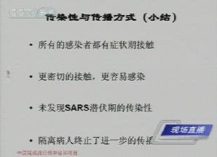 專家根據(jù)一個(gè)非典病人病例進(jìn)行分析指出,根據(jù)病人背景資料顯示,該病人是一位超級(jí)非典傳播者,該病人發(fā)病初期由于年齡過高并伴有其他病癥,故其非典病癥被忽略。由此也說明老年人如感染非典更容易成為病毒傳播者。