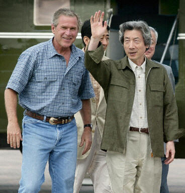 小泉與美國總統(tǒng)布什在得克薩斯州克勞福德的私人農(nóng)場舉行會談,兩國領(lǐng)導(dǎo)人將就伊拉克重建和朝鮮核問題等交換意見。