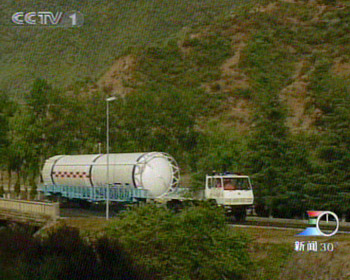 “北斗一號”導航定位衛(wèi)星運往發(fā)射架途中