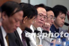圖為病毒學(xué)家洪濤院士等專家在北京會場聆聽發(fā)言。