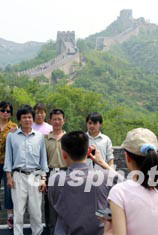 一些外地游客五月三十一日在北京八達嶺長城上合影,留下美好瞬間。因北京非典疫情而冷清多日的一些著名景點隨著疫情的回落,開始顯現(xiàn)旅游熱升溫跡象。中新社記者:毛建軍