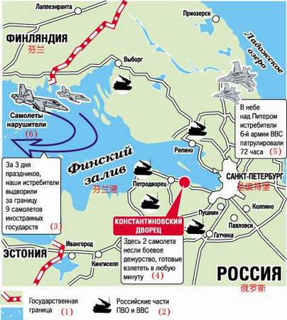 不過隨后當記者向俄空軍新聞處負責人亞歷山大-德羅貝舍夫斯基致電詢問時,他卻否認了這一說法。不過他證實,圣彼得堡峰會期間,俄空軍第六軍和防空軍確實在高警備狀態(tài)下執(zhí)行任務。軍方動用了比平時更多的雷達站,而且還投入了很多С-300高射炮用于防空。當各國首腦專機飛臨時,空軍飛機前去迎接并提供相應的安全保衛(wèi)措施。所有從邊境通往圣彼得堡飛機場的空中走廊都被嚴密地保護起來。因此,圣彼得堡以及它的周邊地區(qū)包括康斯坦丁宮的上空都處于保護之下。(春風)