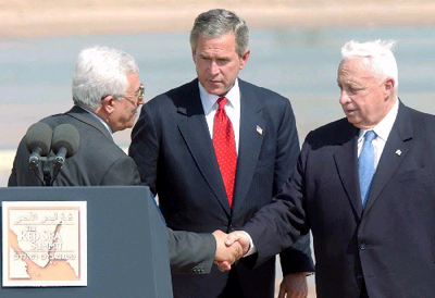布什主持了巴勒斯坦自治政府總理阿巴斯與以色列總理沙龍之間的峰會,隨后結(jié)束就任總統(tǒng)兩年半來首次親自到中東進(jìn)行謀和的訪問。