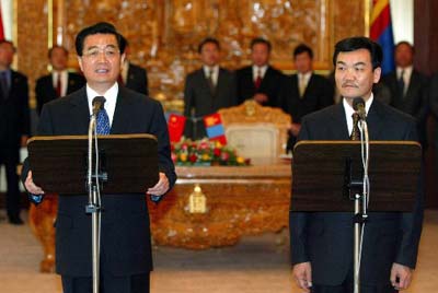 胡錦濤說,為在新世紀使中蒙關系邁上新臺階,中方建議: