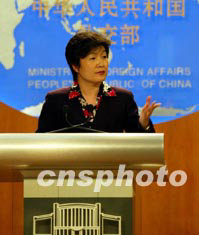 中國(guó)外交部發(fā)言人章啟月六月五日就國(guó)家主席胡錦濤首次出訪、美以巴三方會(huì)晤、尼泊爾警方近日遣返中國(guó)非法移民等問(wèn)題回答記者提問(wèn)。中新社記者:滿會(huì)喬