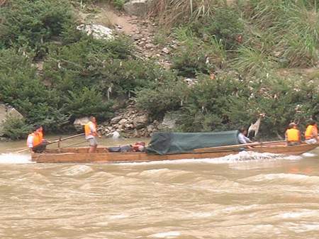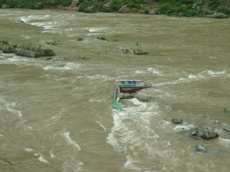 “響聲很大,很響。開(kāi)始我還想這船怎么那學(xué)生來(lái)撞著玩呢。”羅安忠回憶說(shuō)。船橫起來(lái)后不到兩分鐘,就折斷在礁石上了,船上的幾十名學(xué)生密密麻麻地幾乎全部掉進(jìn)水中,被湍急的河水沖洗走,只剩下一小部分人幸運(yùn)地站到河灘中間露出的礁石上面,等待施救。
