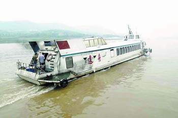 昨日早晨7時20分,該報記者按預(yù)定時間來到重慶市奉節(jié)縣碼頭,擬坐“遠舟號”飛船到豐都采訪。記者與眾多旅客差不多望穿長江,才于8時30分才看見“遠舟號”慢慢駛來。“遠舟號”啟動,一陣陣巨大的尖叫聲傳進了人們的耳鼓,游客無不臉露憂慮之色,因為“遠舟號”前行相當(dāng)吃力,根本感受不到它會飛起來。服務(wù)員說,飛船有了一點毛病,具體原因不甚清楚,希望大家保持冷靜。繼續(xù)行進中,飛船仍在尖叫,其船體給人以疲憊沉重之感。沒走多遠,“遠舟號”就停止了。少頃,又緩緩啟動前行。走走停停之下,沒有服務(wù)員為乘客解釋飛船變慢的原因。