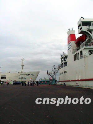 十四日中午一時,一聲汽笛長鳴,“粵海鐵二號”火車輪渡駛進了粵海鐵南港港池,十五分鐘后大副將一號纜拋向南港碼頭——“粵海鐵二號”與他的兄長“粵海鐵一號”在粵海鐵南港碼頭首尾相望勝利會師。