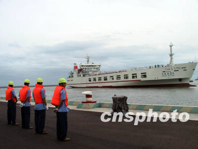 工程人員介紹說:“粵海鐵二號”到達?诤,將在瓊州海峽粵海鐵路南、北港口之間進行船、橋、港聯(lián)合調(diào)試,在滿足調(diào)試大綱的各項技術(shù)指標要求并辦理交船和運營手續(xù)后,與“粵海鐵一號”實現(xiàn)對開,一旦汽車運輸、火車客運獲批,將同時投入運營。