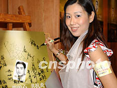 曾獲香港國(guó)際親善小姐稱號(hào)的殷莉,六月十四日出席在香港舉行的「龍的心、共抗炎,李小龍慈善珍藏電話卡公開(kāi)發(fā)行」活動(dòng)。錢興強(qiáng) 攝