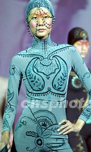 2003年6月17日,香港理工大學(xué)紡織及制衣學(xué)系24位學(xué)生在香港舉行的畢業(yè)時裝展上,展示精心設(shè)計及縫制的系列作品。中新社記者: 錢興強