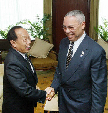 中新網(wǎng)6月18日電 中國外交部長李肇星18日在金邊會見了美國國務卿鮑威爾,雙方就兩國關系和共同關心的其他問題交換了意見。