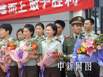 今天出院的病人,最大的65歲,最小的15歲。他們顯得特別興奮,一出院門就拼命向我們揮手,我把手里的鮮花獻(xiàn)給了一個女孩,她用不太標(biāo)準(zhǔn)的手勢向我敬了一個軍禮,“謝謝解放軍,希望你們也能趕快回家和親人團(tuán)聚!彼⑿Φ?fù)P起了臉,在陽光下洋溢著健康的一張娃娃臉,我喜歡這張臉。