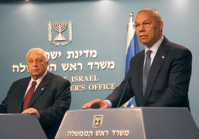 鮑威爾在會(huì)晤后與沙龍舉行的聯(lián)合記者招待會(huì)上表示,巴勒斯坦方面不能僅僅通過與巴激進(jìn)組織達(dá)成;饏f(xié)議來(lái)停止暴力活動(dòng),而應(yīng)該摧毀他們制造暴力的能力。鮑威爾還指責(zé)巴勒斯坦伊斯蘭抵抗運(yùn)動(dòng)(哈馬斯)是“和平的敵人”。