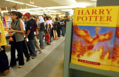 在全球書迷的引頸期盼下,風(fēng)靡世界的暢銷兒童讀物《哈利·波特》系列第五集《哈利·波特和鳳凰的指令》終于在格林尼治時(shí)間20日23時(shí)(北京時(shí)間21日上午7時(shí))全球同步發(fā)行。