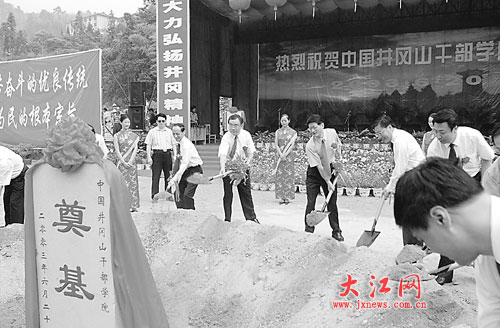 井岡山是中國革命的搖籃,井岡山精神是我們黨的寶貴精神財富。黨中央決定在井岡山建設國家級干部學院,是黨中央推動興起學習“三個代表”重要思想新高潮、進一步加大干部教育培訓力度、創(chuàng)新干部教育培訓體系的一項重大舉措。中國井岡山干部學院將力爭建成為面向全國的革命傳統(tǒng)教育基地、基本國情教育基地,并將于2004年建成、2005年投入使用。建成后的學院可同期容納在校學員400人,與中央黨校、國家行政學院相互交流合作、資源共享、優(yōu)勢互補。